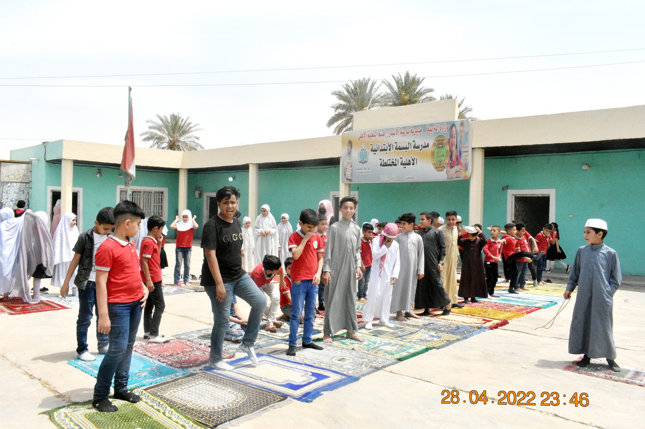 - وجود ساحة خاصة بالمدرسة مفروشة بالعشب الأخضر حفاظاً على سلامة التلاميذ